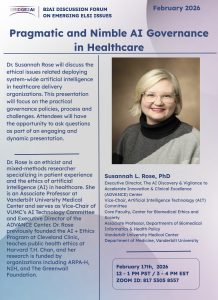 B2AI Discussion Forum on Emerging ELSI Issues: “Pragmatic and Nimble AI Governance in Healthcare” by Dr. Susannah Rose
