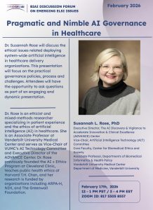 Please join us on Tuesday, February 17th 2026 at 12pm-1pm PST/3pm-4pm EST for the discussion forum: Pragmatic and Nimble AI Governance in Healthcare“,  by Dr. Susannah Rose.